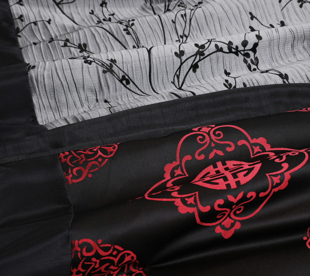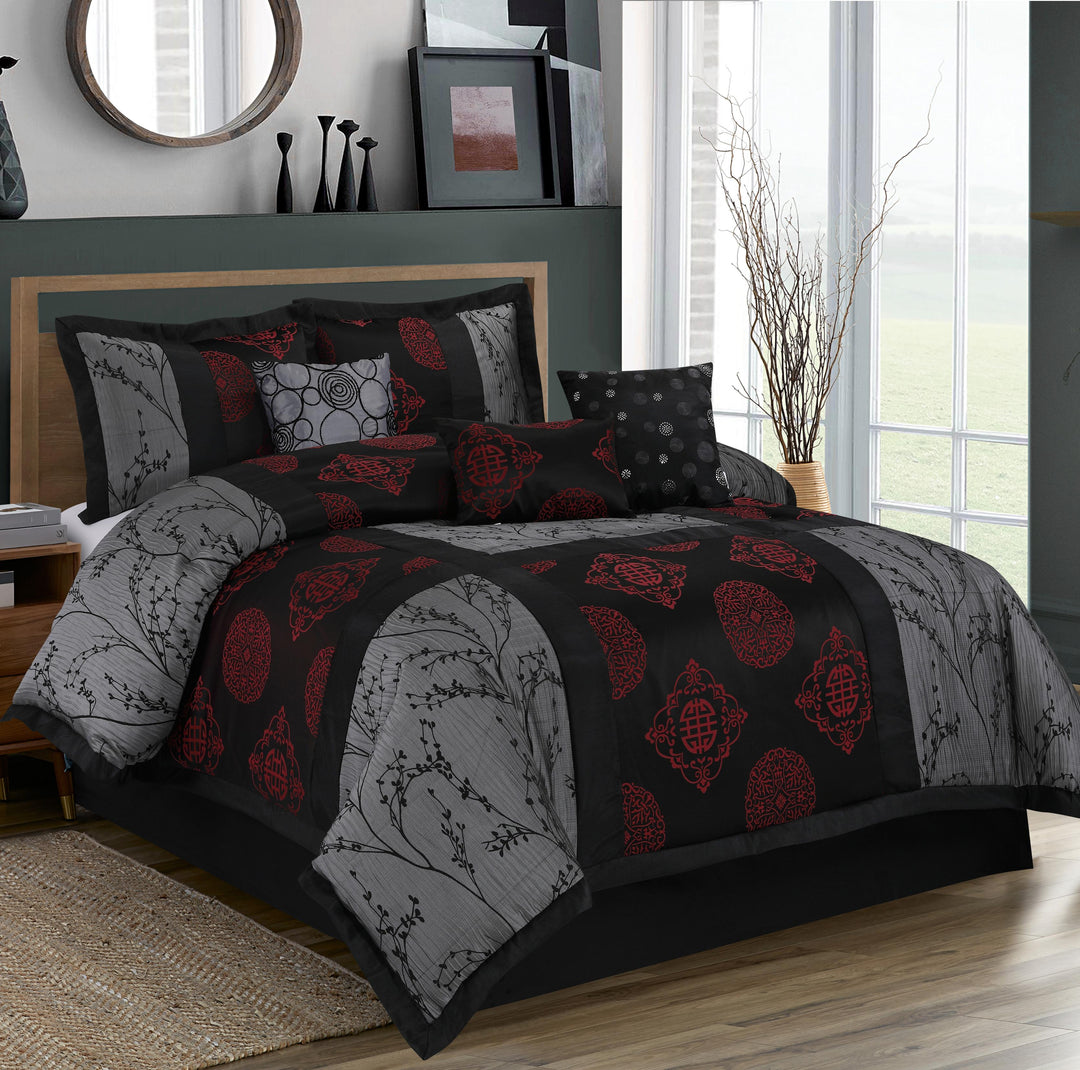 7-Piece Classic Branch Black Bed-in-a-bag - Patchwork Design Comforter Set-Shangrula