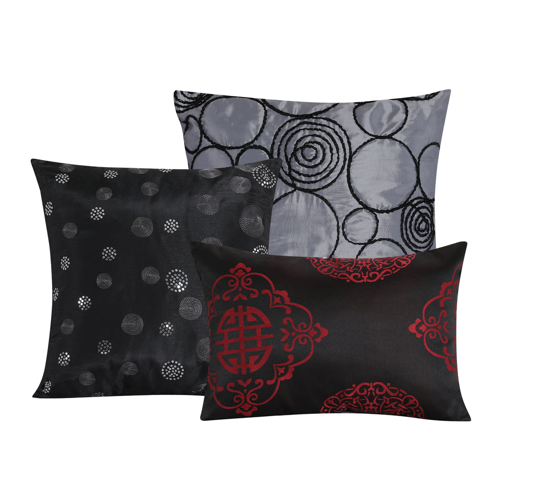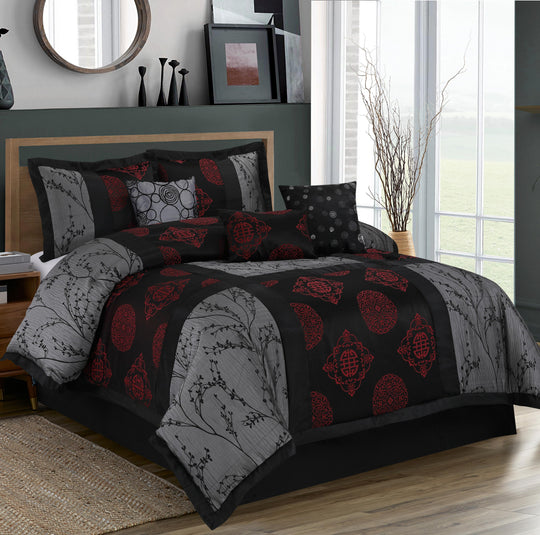 • COLOR&CRAFTS: This burgundy and black comforter set is made of jacquard fabric, and reactively designed by leticia flower and medal pattern. It makes the whole comforter set beautiful and elegant.