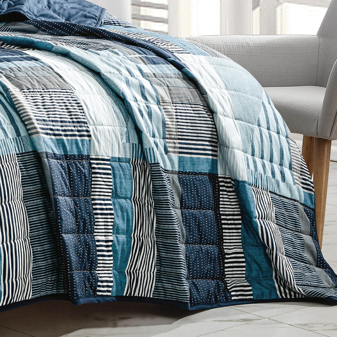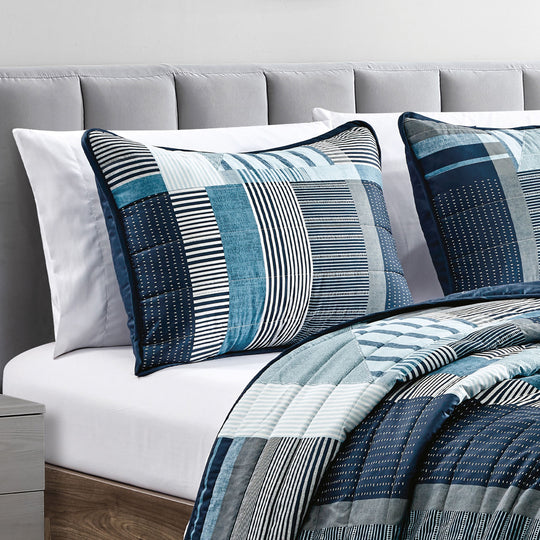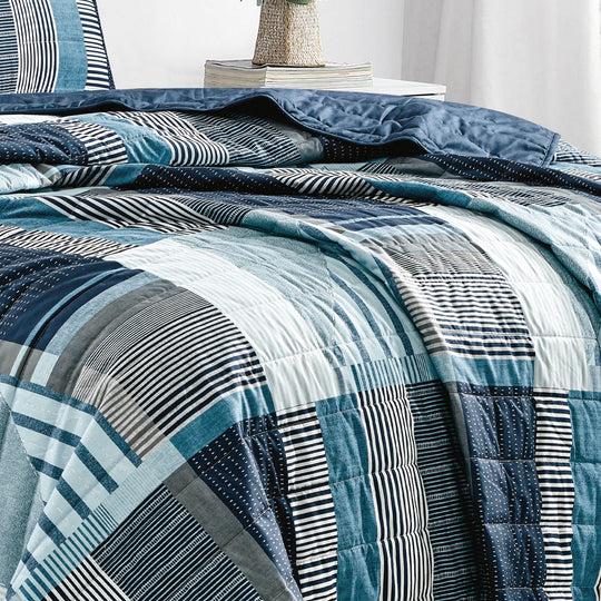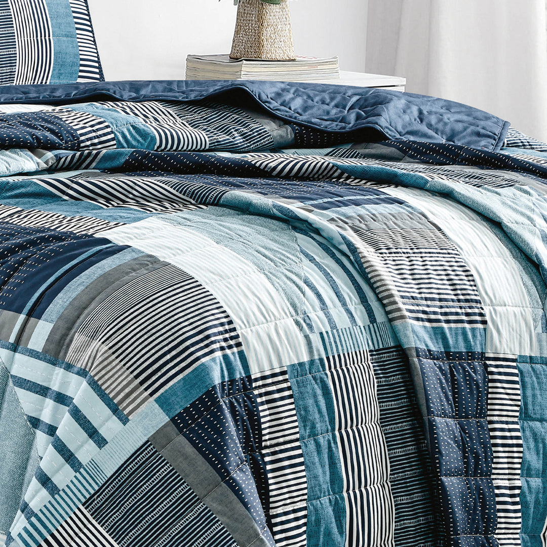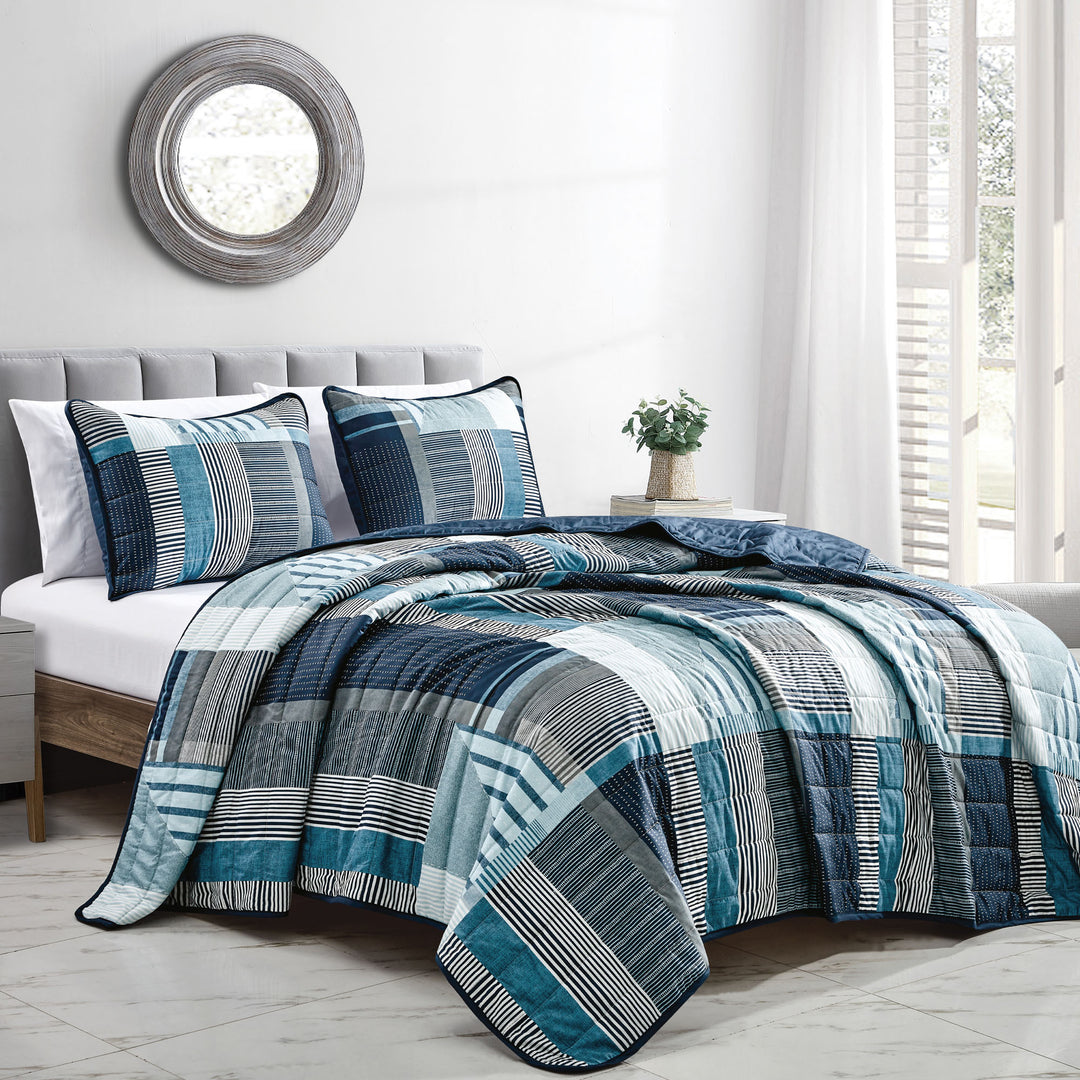 HIG 3 Piece Stripe Splicing Print Bedspread Set King & Queen Size for Bedroom