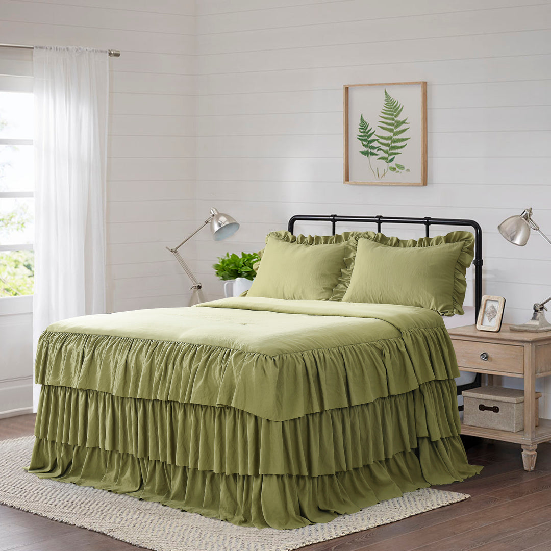 Ruffle Skirt Bedspread Three Layers Design Chic Style Bedding Set