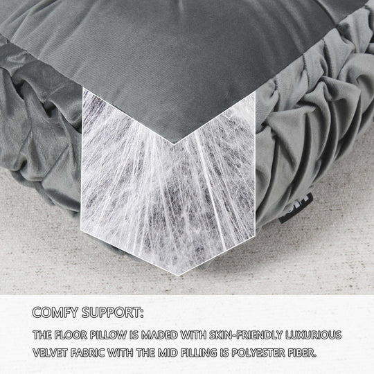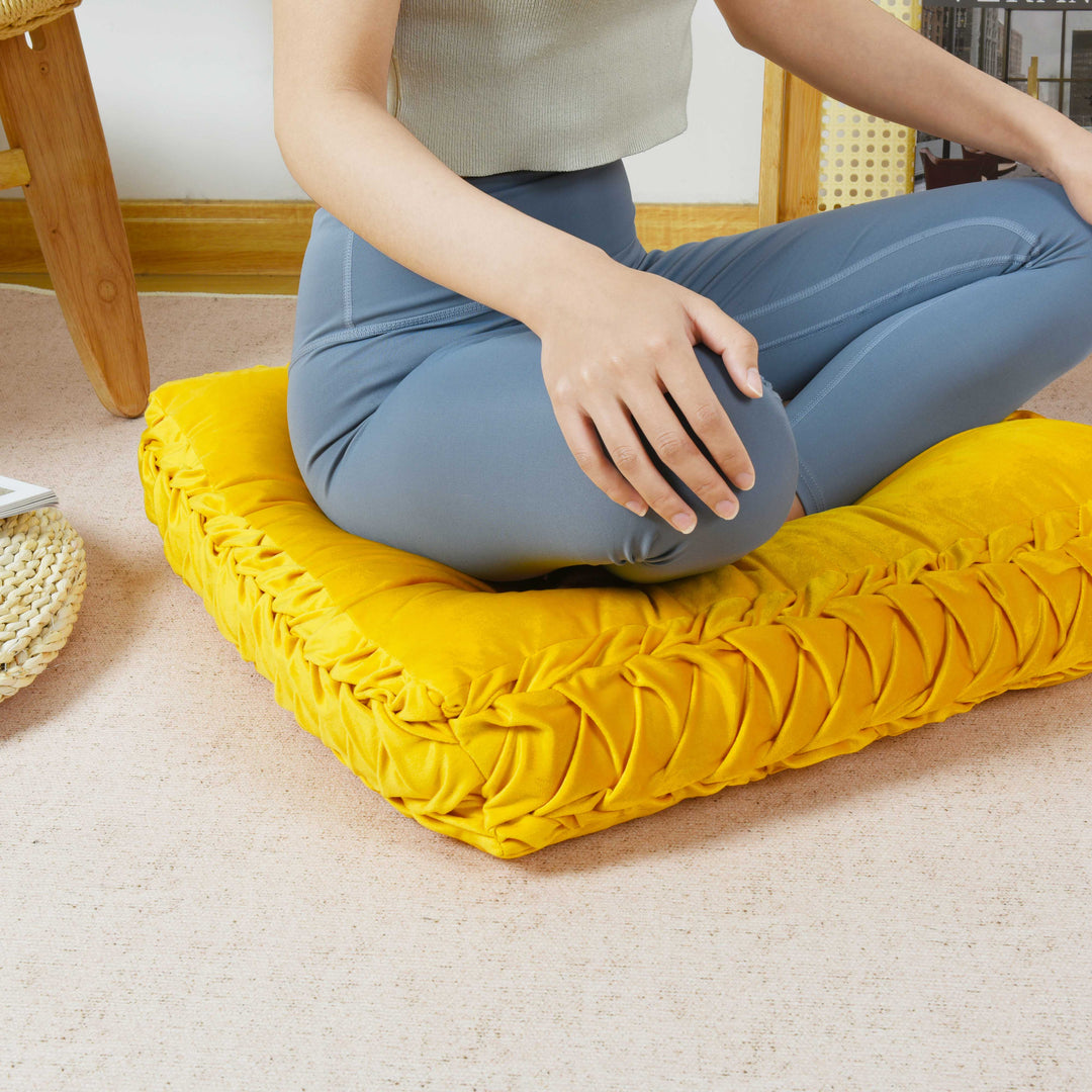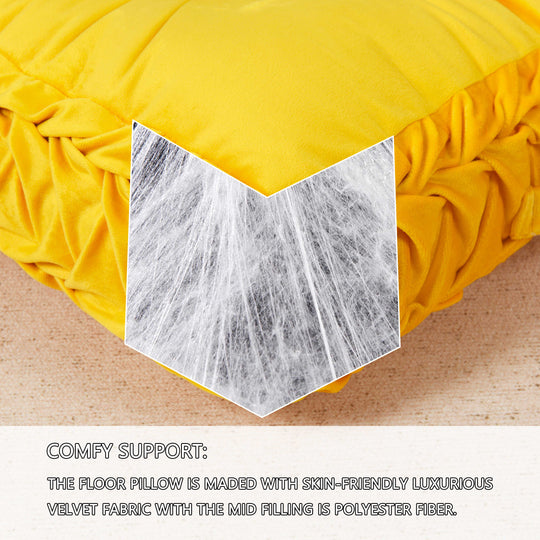 HIG Velvet Square Tufted Floor Pillow with Handmade Pleated 22x22 inch